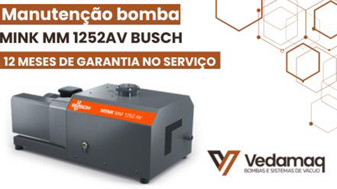 Confie na nossa manutenção para sua Bomba Vácuo MINK MM1252AV: garantia 12 meses, peças Busch originais, vácuo otimizado e ruídos reduzidos.