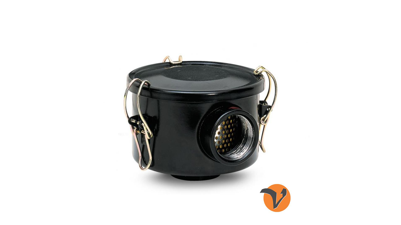 Na imagem vemos um modelo de filtro de entrada para bombas de vácuo. Este modelo é dimensionado conforme a potência e dimensão de rosca da admissão da bomba. Na tabela também disposta neste artigo, é possível ver qual modelo de filtro de entrada indicado segundo a capacidade em m³/h da sua bomba de vácuo.
