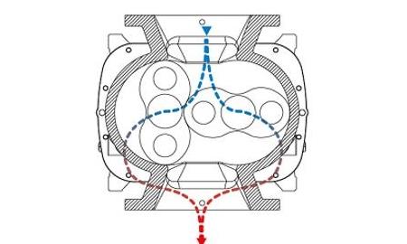 As bombas de vácuo volumétricas de lóbulos da série BCA são máquinas que, graças à rotação sem contato de dois rotores de dois lóbulos dentro de uma câmara de forma adequada, criam volumes e transferem ar do duto de sucção para o duto de escape. Sua operação é completamente seca, ou seja, sem lubrificante e resíduos gerados por deslizamento ou contato durante a rotação. Os lóbulos são sincronizados através de engrenagens em uma câmara separada da parte de processo e são lubrificadas com óleo sintético de longa duração. As bombas de lóbulo da série BCA são adequadas para serem acopladas aos motores elétricos padrão da série IEC 72 B5 e podem ser fornecidas em 3 configurações: BCA sem motor BCA com motor IE3 BCA com motor IE3 + Inversor de Frequência (AdaptShield)